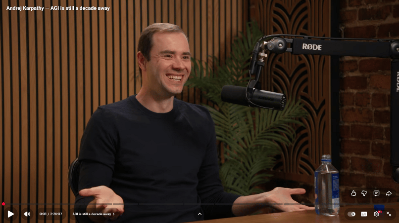 A must-watch, in-depth interview with AI expert Andrej Karpathy. He provides a sober, realistic assessment of the current state of LLMs, arguing that AGI is still a decade away and that current models have significant "core cognitive gaps". This interview offers a crucial, grounded perspective for founders navigating the hype cycle.